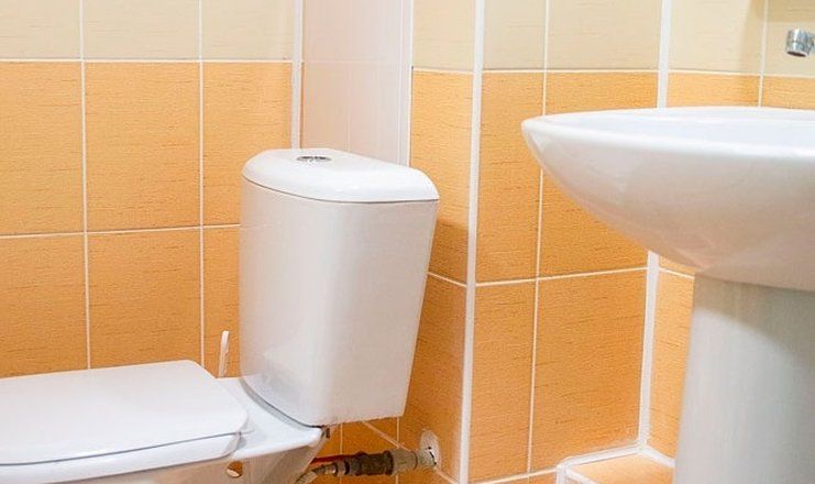Санузел: душевая кабина, раковина, унитаз, туалетные принадлежности