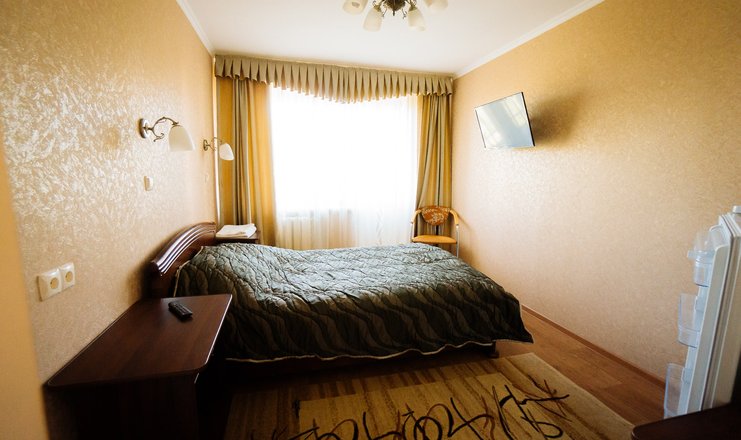 В номере: кровати односпальные или одна двуспальная, прикроватные тумбочки, стол, стул, шкаф, телевизор, холодильник, телефон, чайный набор посуды, электрочайник